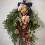 数種類の針葉樹と木の実やコットンを自分好みに合わせて作ります。アレンジ次第で、お正月飾りにも♬ 作品サイズ:幅25㎝×高さ40㎝ ※組み方により変わります。