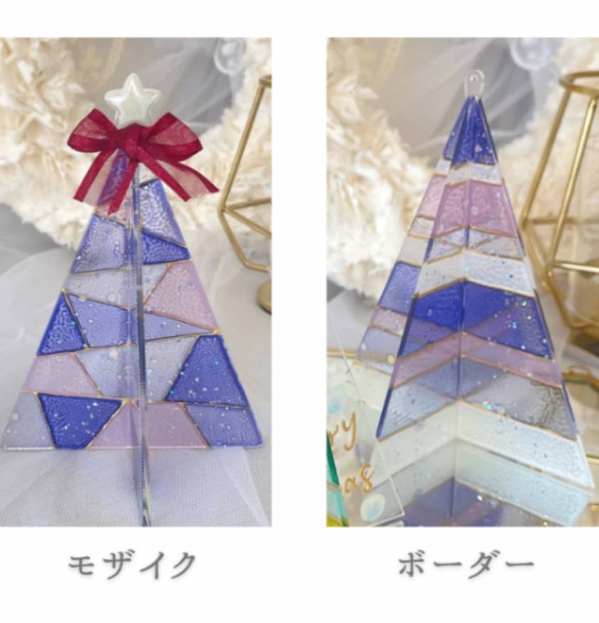 廃材ガラスから⽣まれたキラキラ絵具を塗って可愛いオリジナルツリーを作ろう! 作品サイズ:横83㎜ 縦110㎜ 厚さ2㎜ ※持ち帰り容器はご用意いたします。 ※アルコールアレルギーの方はご参加いただけません。※デザイン(2種)から選んで色付けをしていただく講座内容です。