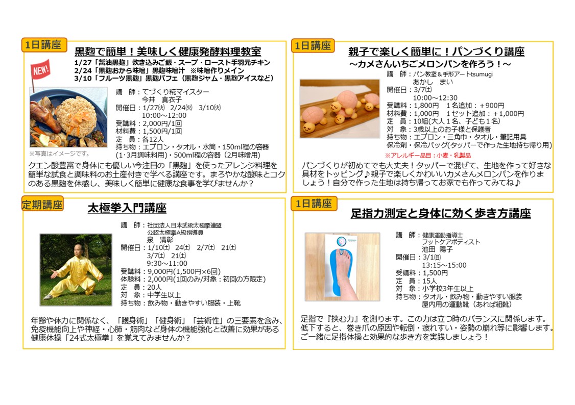 新年よりスタートする 1月~3月のカルチャー講座の受講生募集を開始いたしました✨ 昨年も開催し人気だった講座や、新しくスタートする新規講座まで 幅広いカルチャー講座がございます(^^) ぜひご受講ください♪