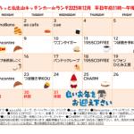 【キッチンカーdeランチ】 12月のキッチンカーdeランチカレンダーです(^O^)♪ 高松市仏生山交流センターふらっと仏生山では、平日の11時~14時にキッチンカーを出店中! また、12月14日には『パン&スウィーツマルシェ』を開催! ぜひご来館ください! ~出店店舗様🚙~ HonoBono さん🥖 ao_café さん🥐 CUE さん🍙 Rencontre さん🥐 ワゴンタイガー さん🍔 1955COFFEE さん☕ つぼ焼き芋KOU さん🍠 コープ自然派しこく さん🍞 バンドゥクレープ さん🍰 シフォンひとみ工房 さん🍰 CHARM さん🍟 ※天候の悪い日や出店予定が変更になる日もございます。 お出掛け前にホームページやInstagramのストーリーをご確認下さいませ。 また、売切れ次第終了になりますので予めご了承くださいませ。