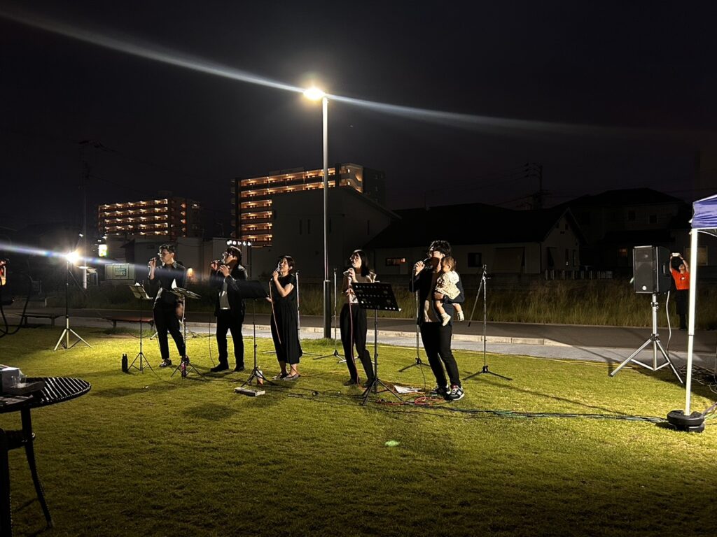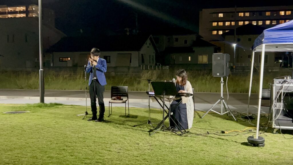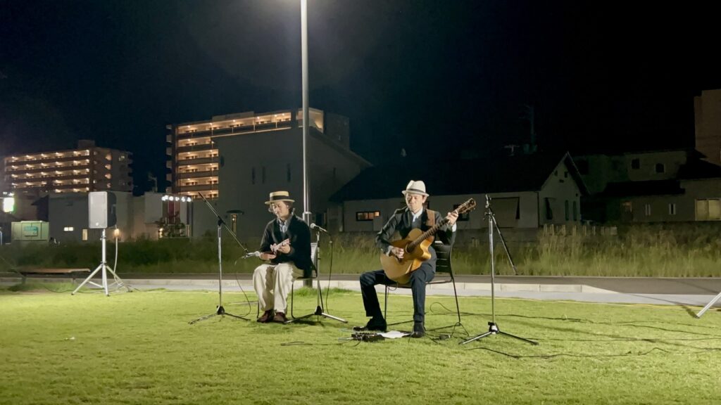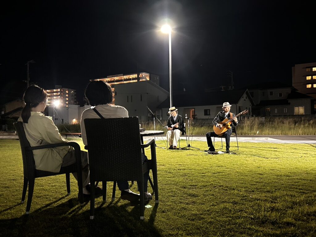 夜の芝生広場でミュージシャンの方がライブをしてくださるのも初めてで、とても素敵な時間でした。