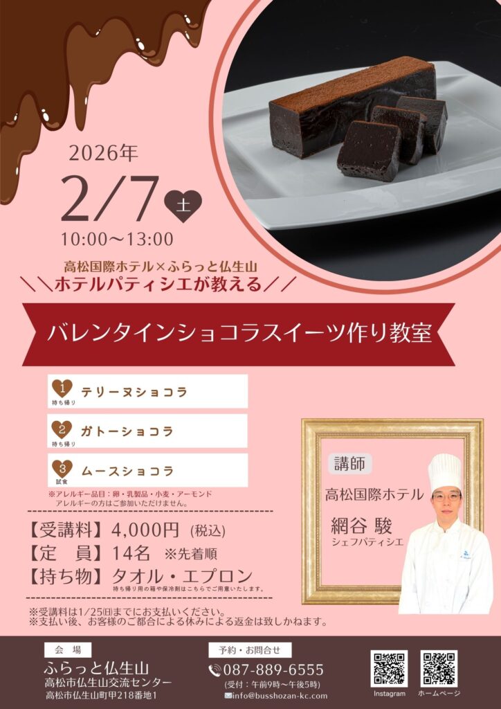 ホテルパティシエが教える「バレンタインショコラスイーツ作り講座」開催決定🍰