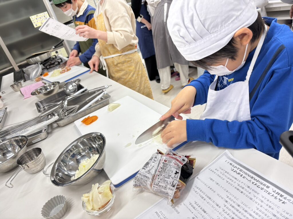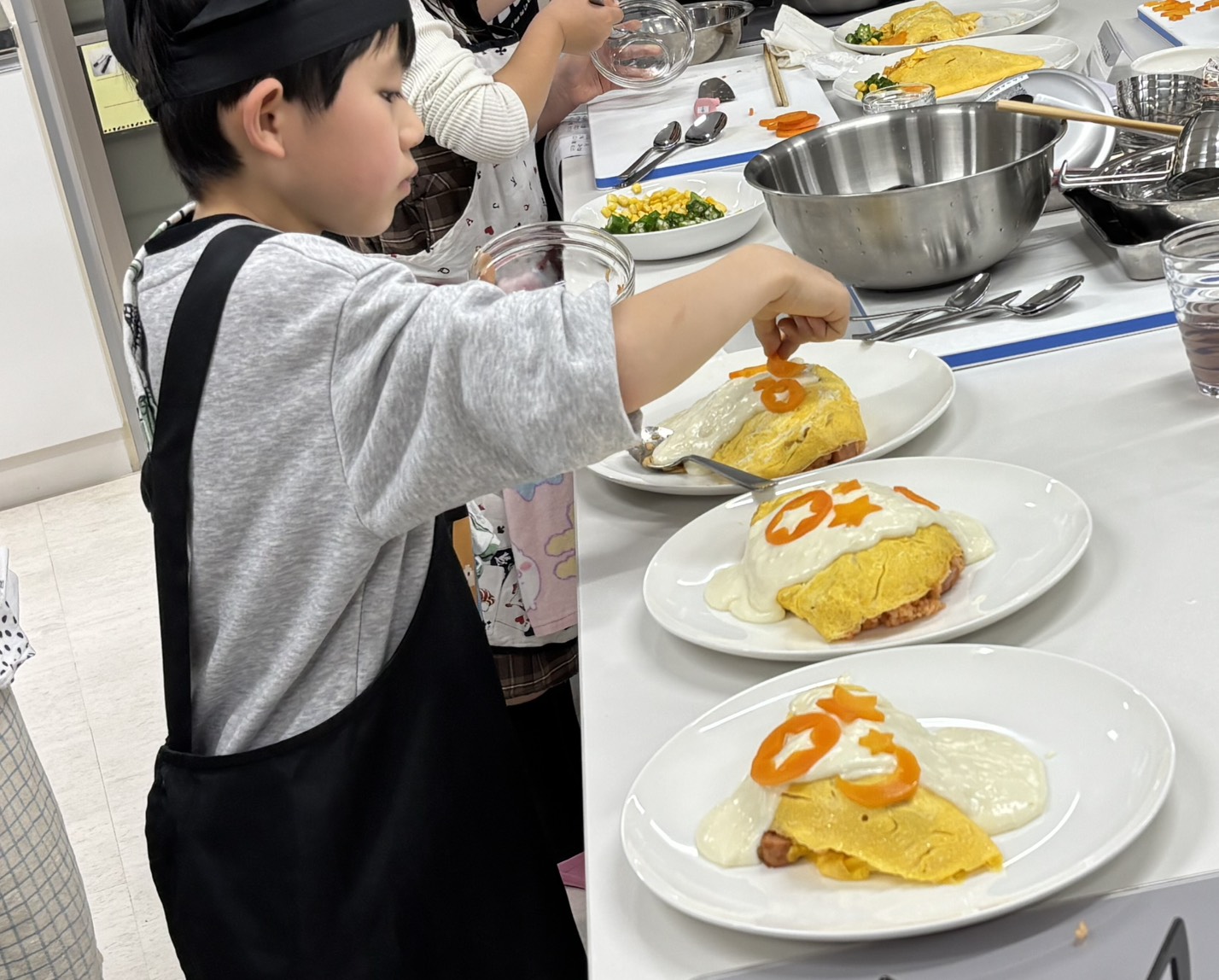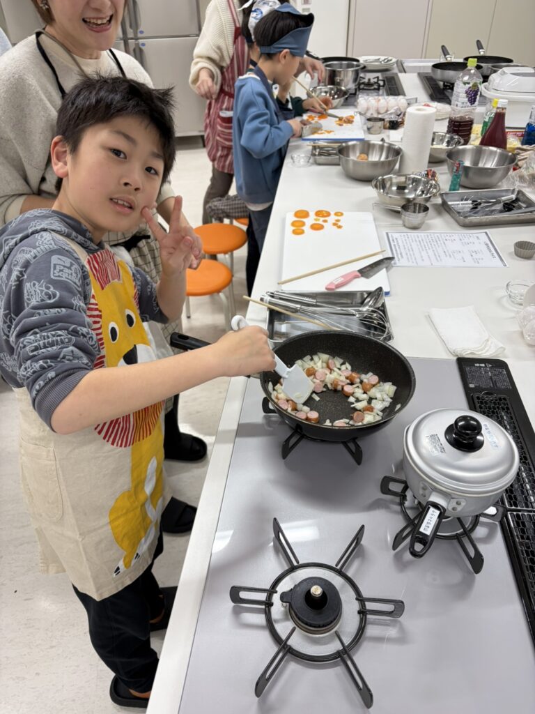 同じテーブルのグループで盛り上がっていたり、子供たちが先生やお母さんと協力したりしながら調理を行っており、とても楽しい料理教室でした♪