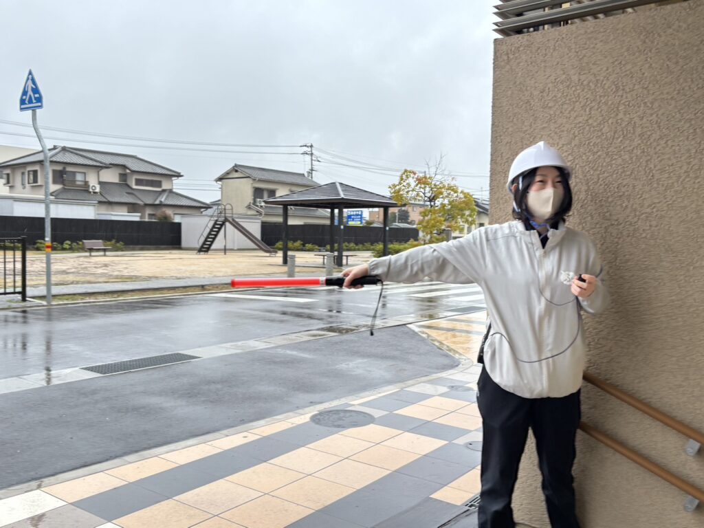 外に出た後も、すぐに建物から離れるため、出口で誘導を行います